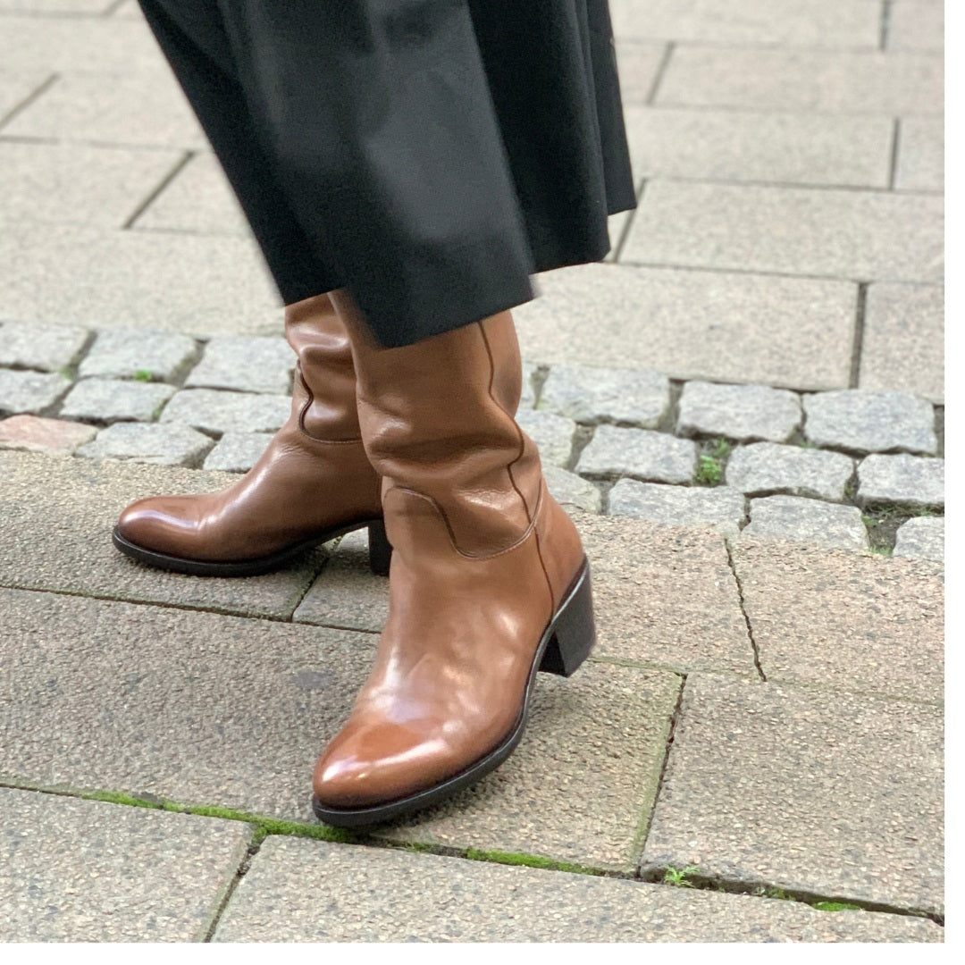 Lang brun støvle på lille hæl fra Elia Maurizi, 16215